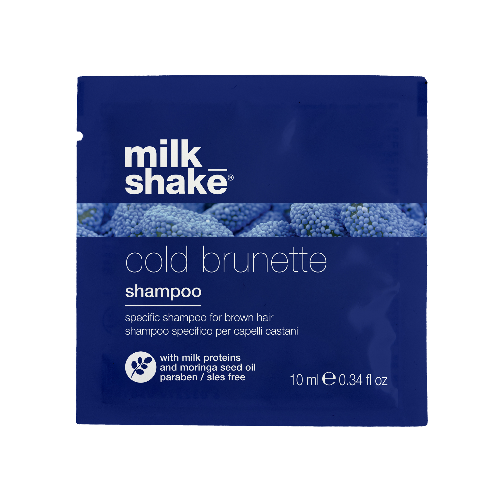 Elevate brown hair with our cold brunette shampoo. With its dark blue pigment, this toning shampoo for brown hair reduces unwanted warmth while cleansing & renewing hair. Milk proteins naturally condition & strengthen hair structure. Integrity 41® & quinoa proteins prevent fading or dulling for longer-lasting vibrance in colour-treated hair. For best results, use milk_shake cold brunette conditioner after cleansing.