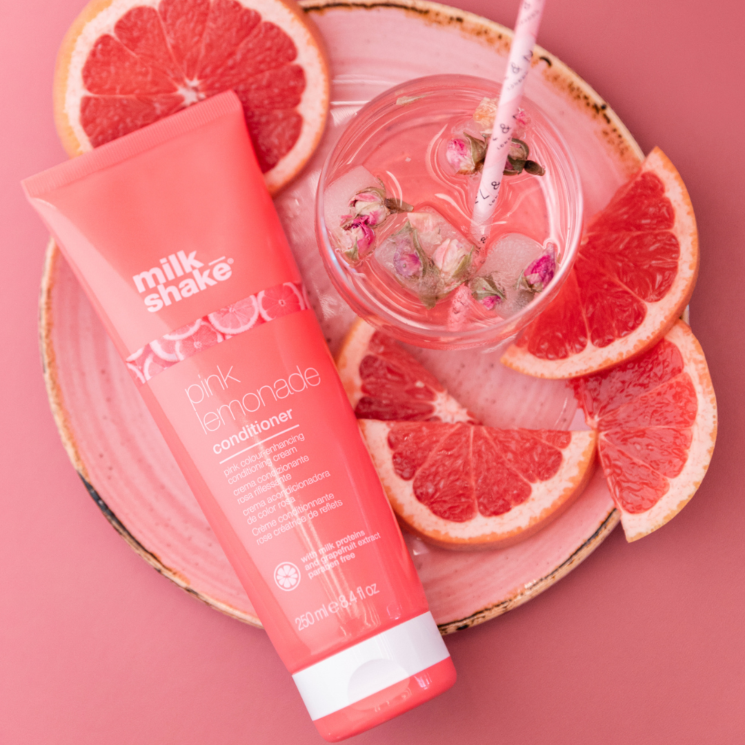 The unique pink lemonade formula contains milk proteins and grapefruit extract, two extraordinary ingredients from nature that have a deep action on the hair, giving a pink colour tone without compromising the hair’s beauty and vitality.