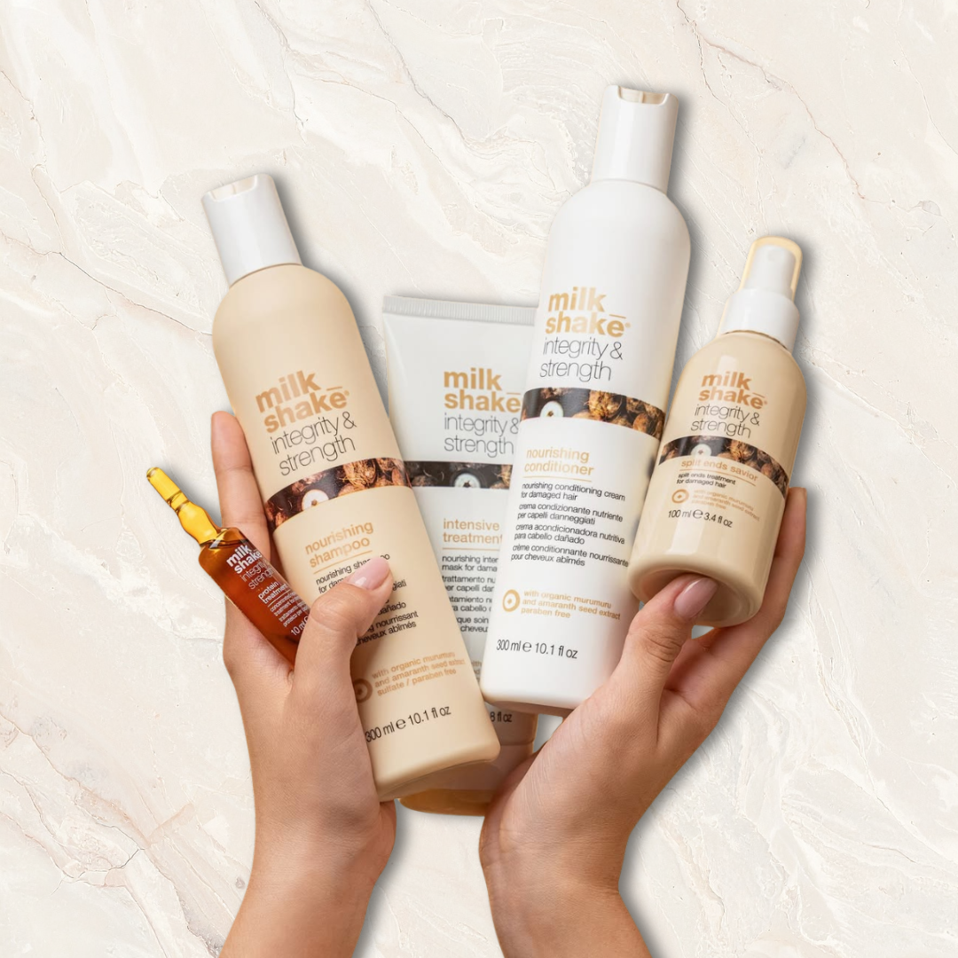 integrity & strength shampoo and conditioner to support stronger, healthier hair and enhanced split-end protection.