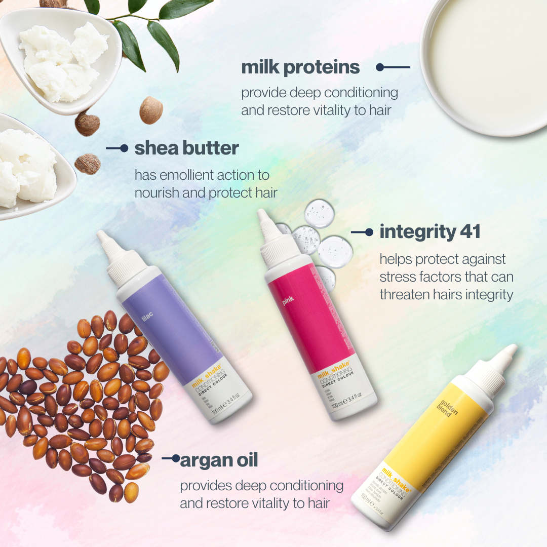 A direct cosmetic colour that can be used at home or in the salon to colour, condition and protect the hair. The colour is temporary and has the ability to correct difficult technical hair problems.