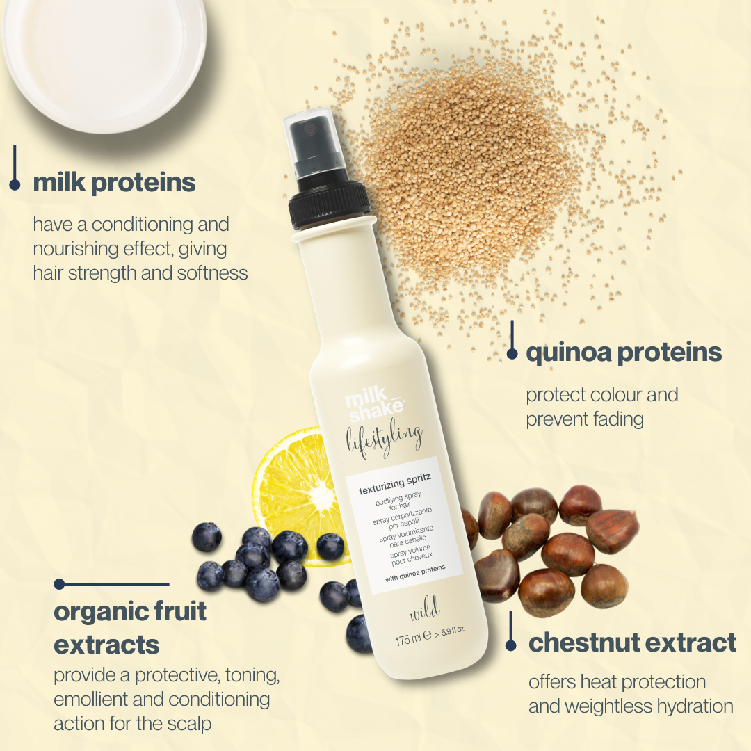 Bodifying formula with a matte finish that gives hold and creates “beach-effect” voluminous waves with shape control on all hair lengths.